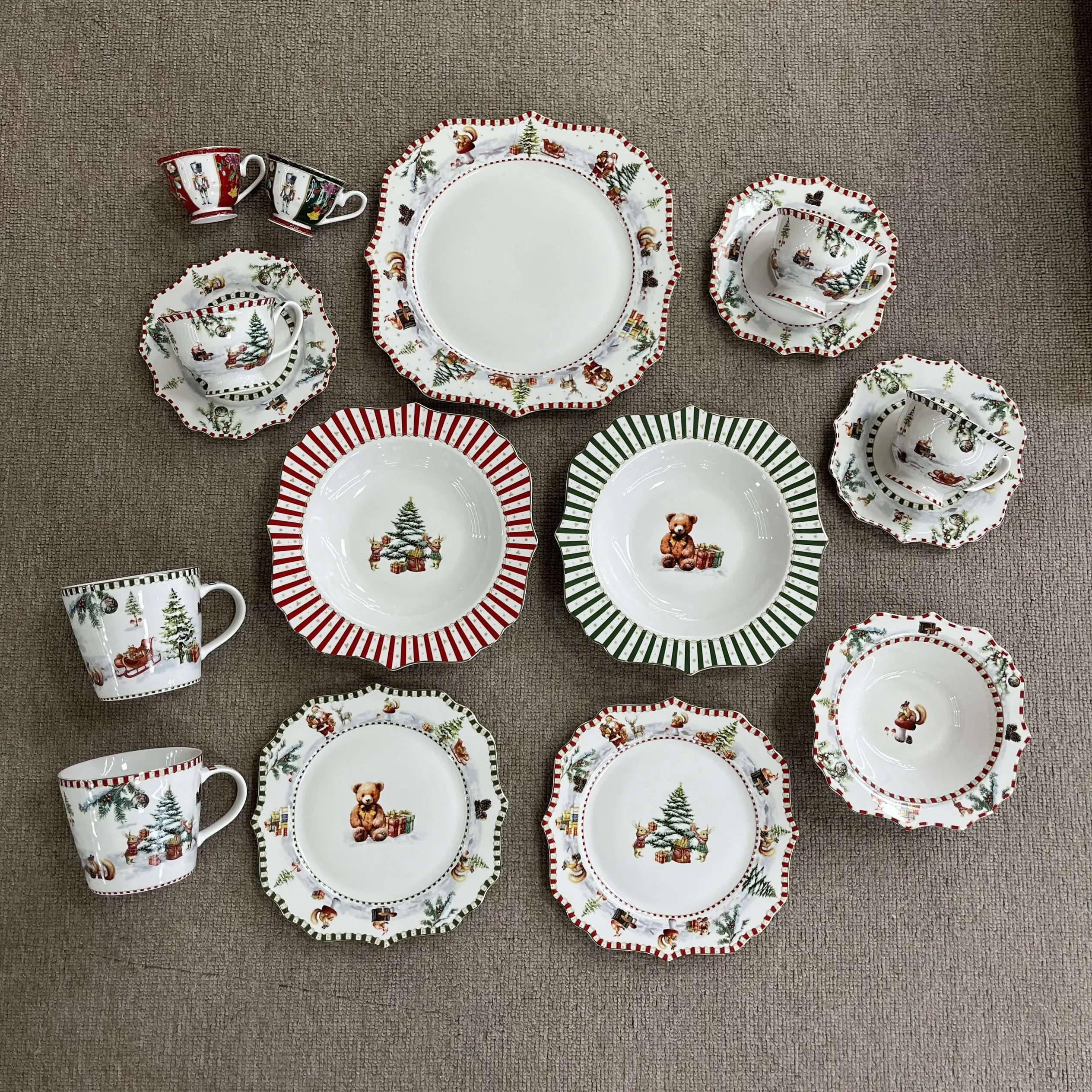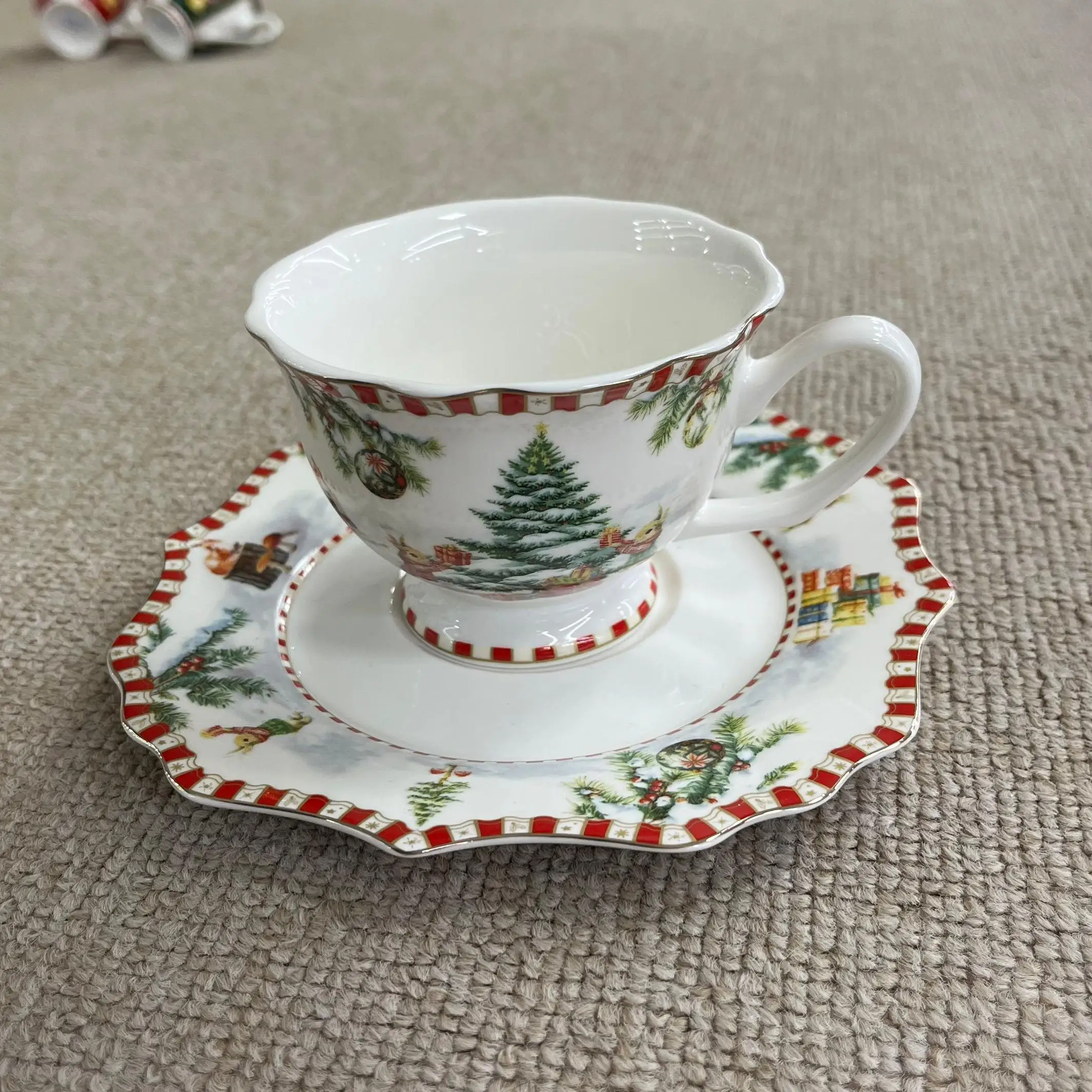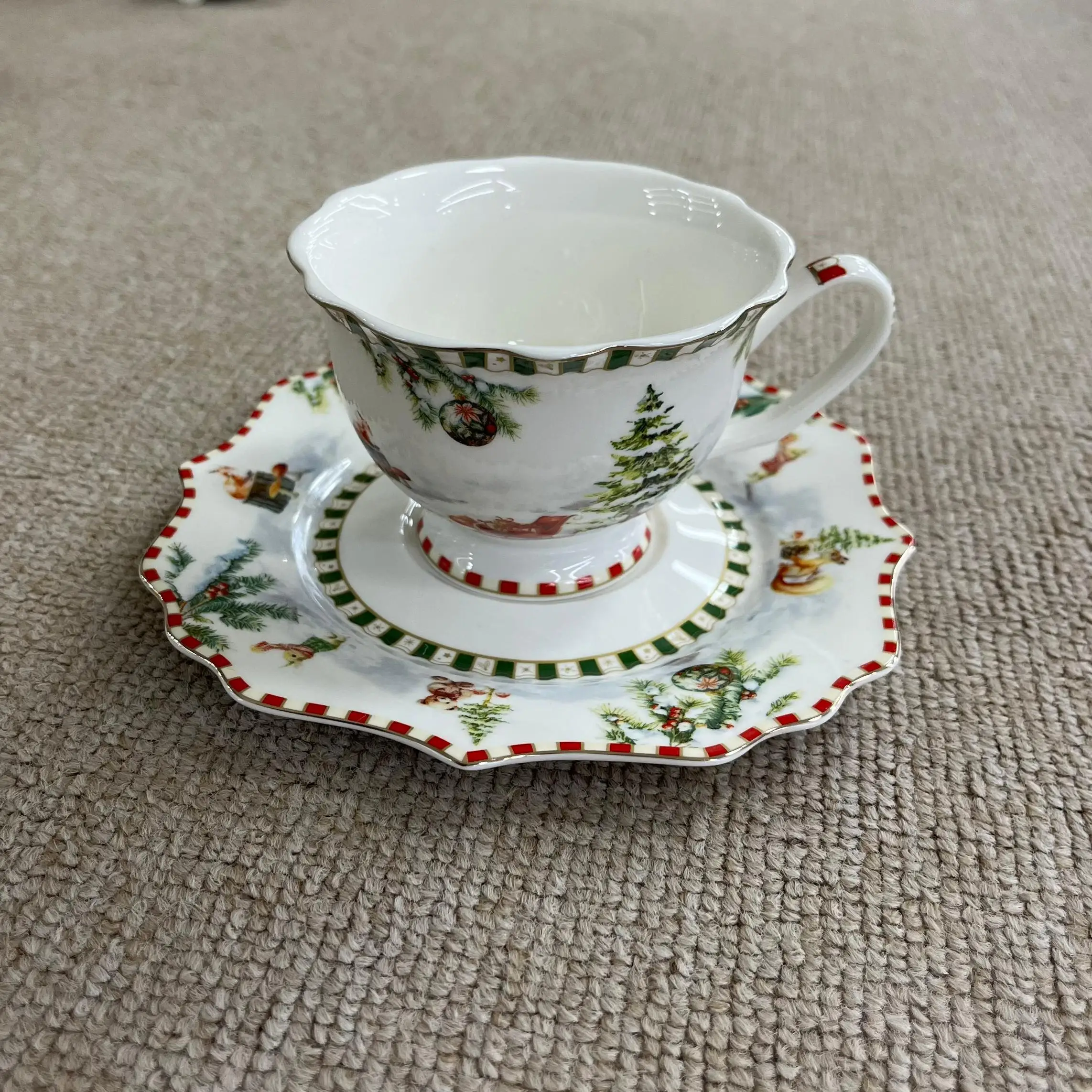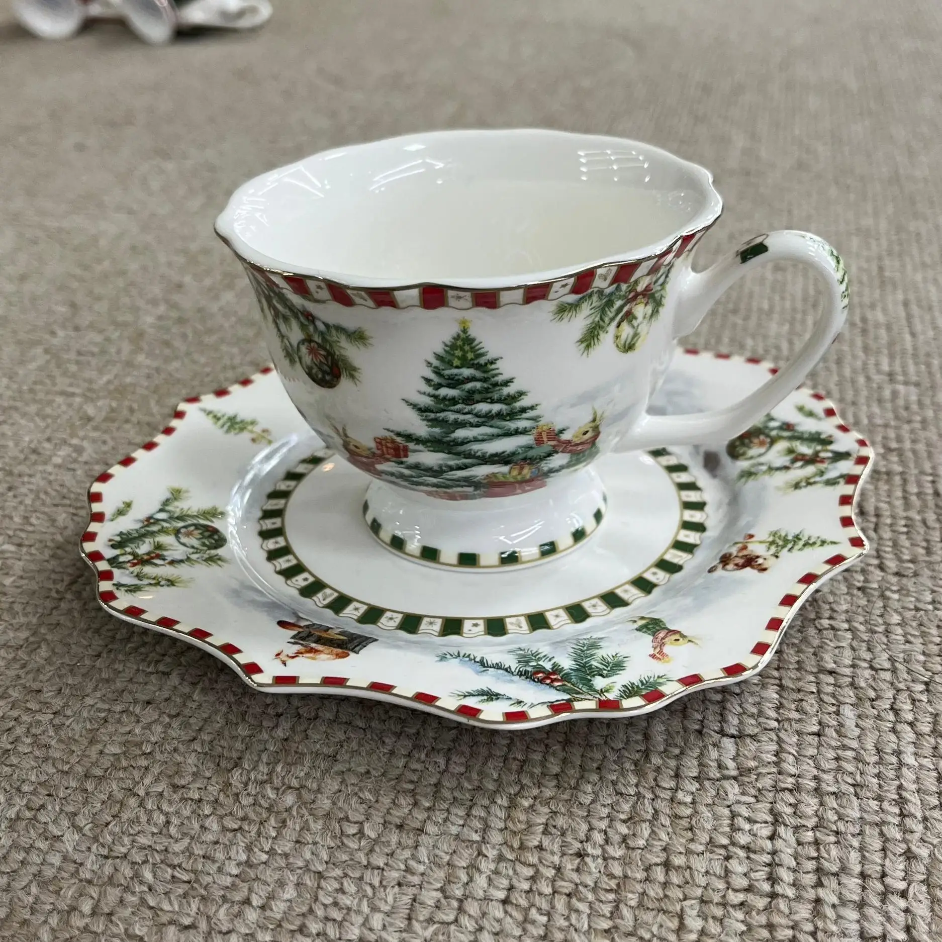 Κατασκευασμένο από λείο, γυαλιστερό πορσελάνη, το φλιτζάνι παρουσιάζει μια γιορτινή σκηνή γεμάτη θέρμη: ένα μαλακό κουνέλι (ντυμένο με κόκκινο σακάκι) παραδίδει δώρα δίπλα σε ένα χριστουγεννιάτικο δέντρο λευκισμένο από το χιόνι, ενώ ένα χαριτωμένο σκιουράκι κρατά ένα κουκουνάρι κοντά. Πλούσια διακριτικά σκουληκιά (που φέρουν ένα λαμπερό χριστουγεννιάτικο διακοσμητικό) περιβάλλουν το σχέδιο, ενώ το χείλος και η βάση του φλιτζανιού φέρουν καθαρές κόκκινες και λευκές ρίγες, που συνδέονται με τις κλασικές χριστουγεννιάτικες αποχρώσεις.