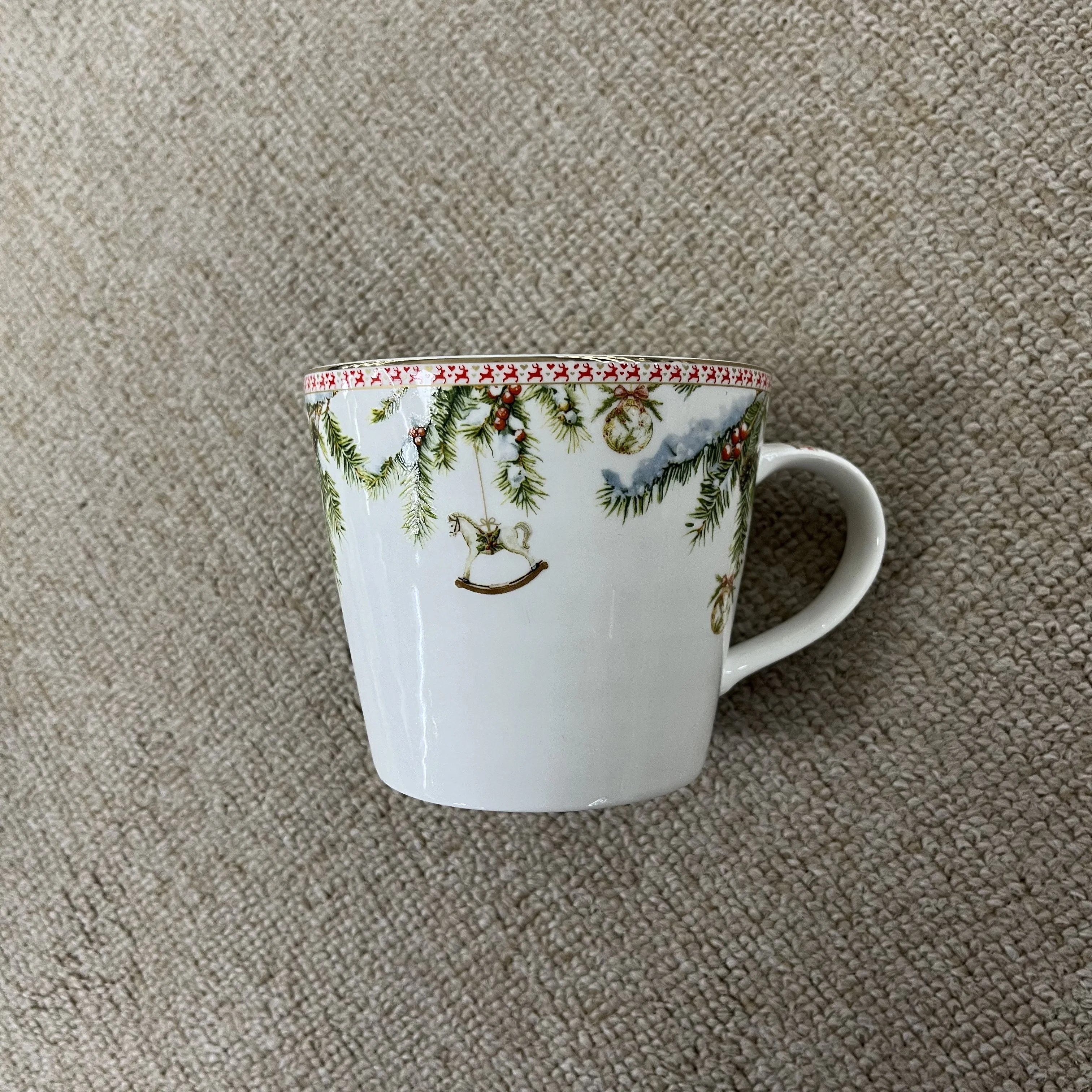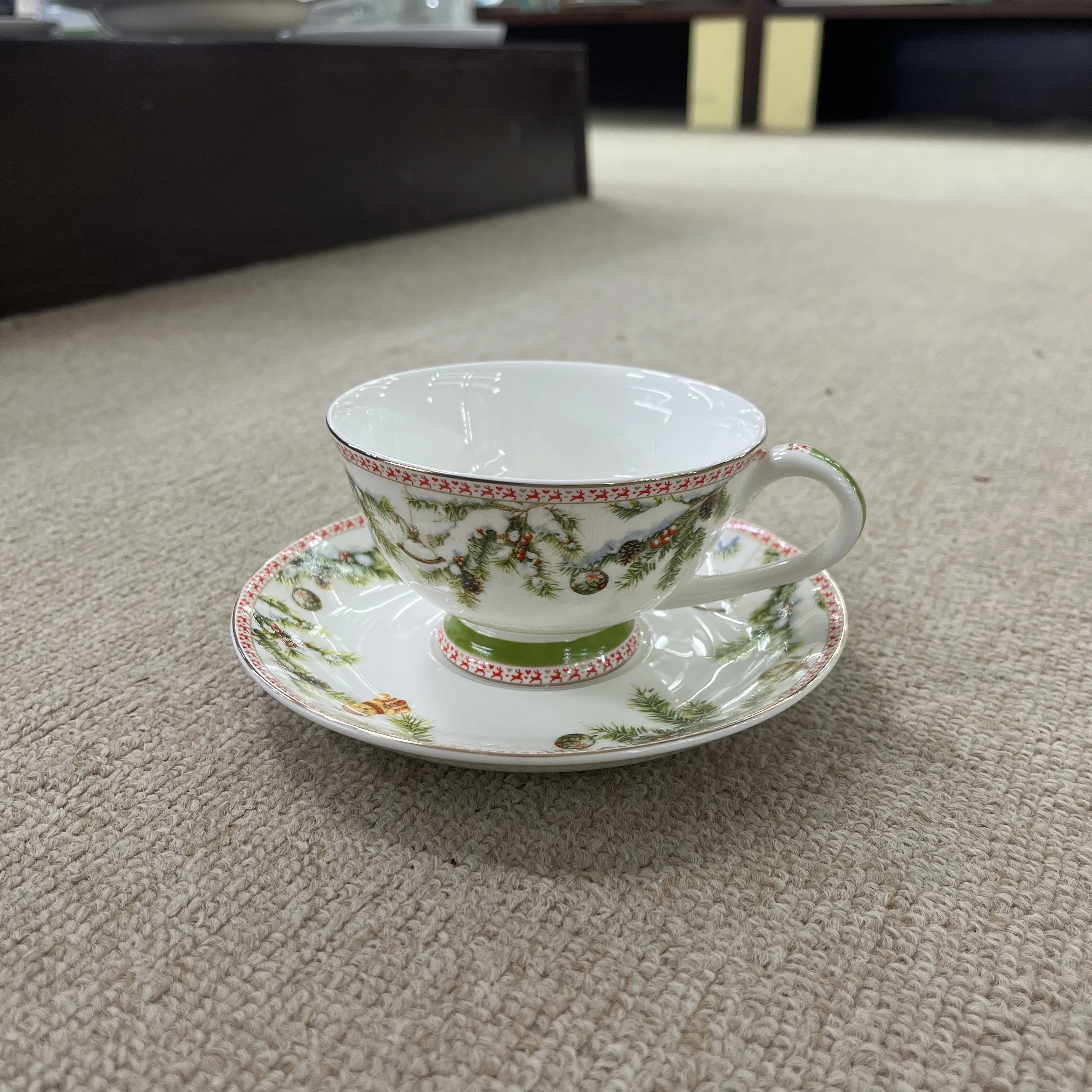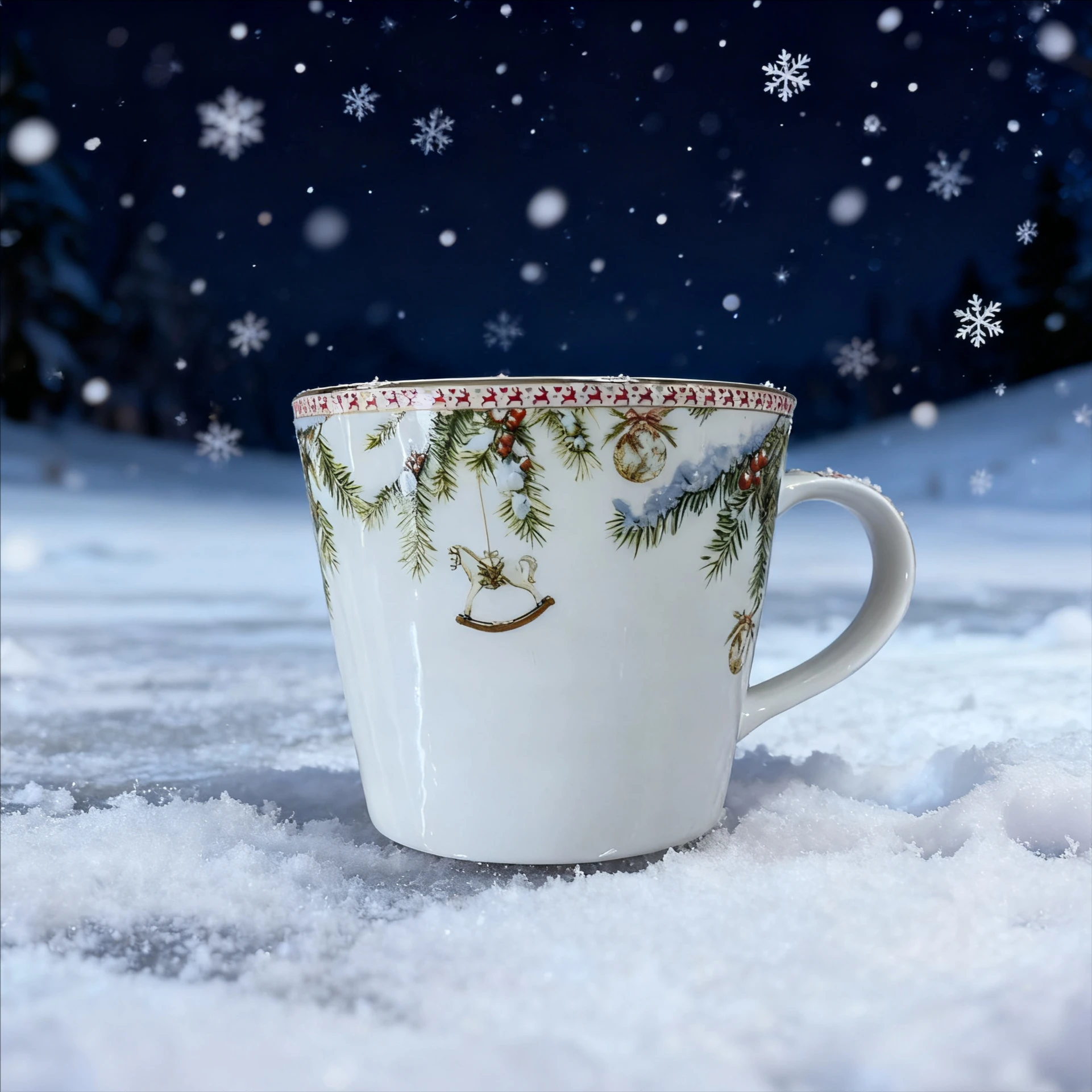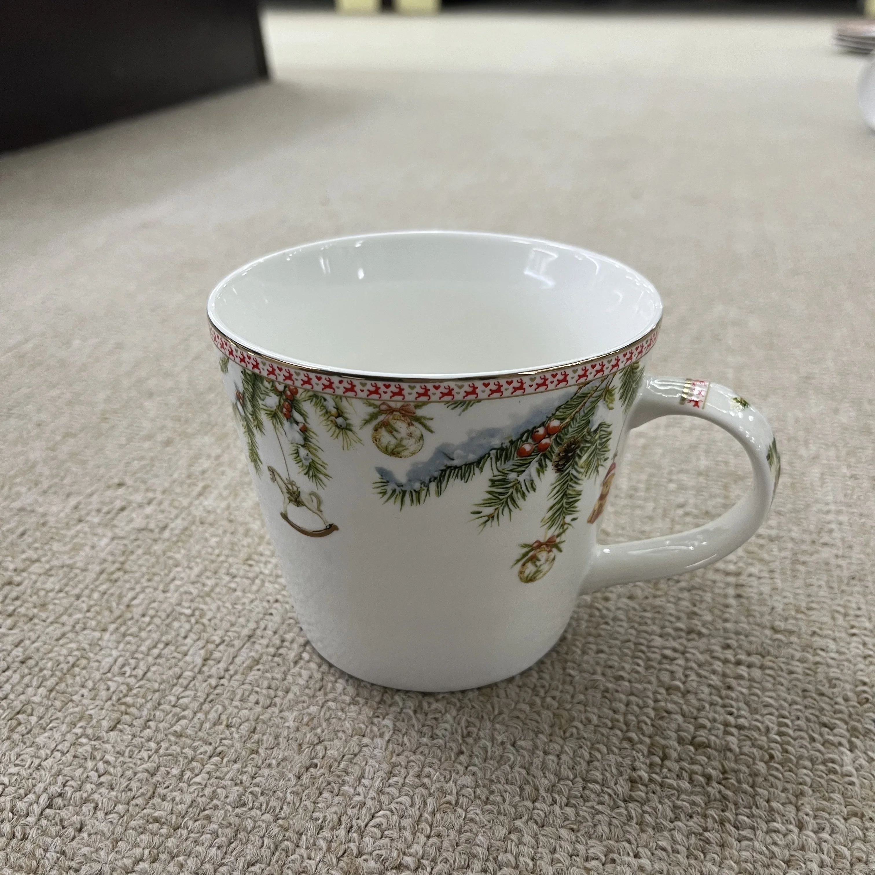 Κατασκευασμένο από λείο, ανθεκτικό πορσελάνη, κάθε κομμάτι αποπνέει την κλασική ατμόσφαιρα των γιορτών: οι άκρες είναι διακοσμημένες με πλούσιες βελανιδιές, λαμπερά χριστουγεννιάτικα στολίδια και αγριώτικα κουκουνάρια, φέρνοντας τη θερμασία μιας δάσους με πεύκα που έχει καλυφθεί από χιόνι. Ξεχωριστές λεπτομέρειες περιλαμβάνουν γλυκιές κεντρικές εικόνες (όπως ένας χαρούμενος Άγιος Βασίλης δίπλα σε έναν παχύ άνθρακα χιονιού) σε επιλεγμένα πιάτα, καθώς και ένα ξεκάθαρο τετραγωνισμένο περίγραμμα (σε κόκκινο και πράσινο) σε ένα πιάτο, προσθέτοντας οπτικό κείμενο και γιορτινή λάμψη.