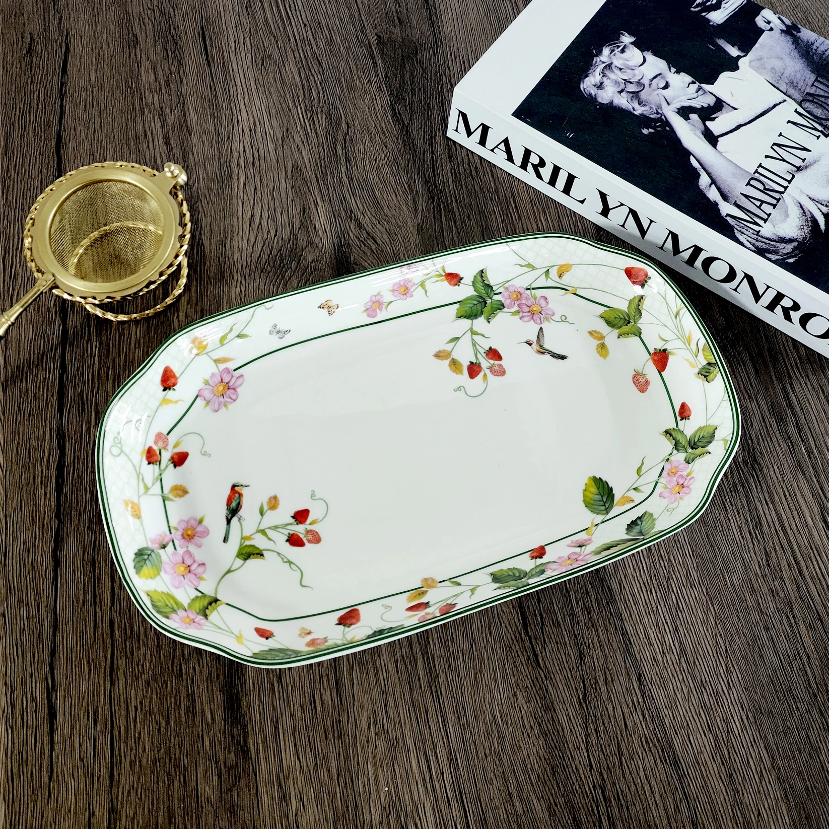 Σερβιτόριο κήπου με φράουλες & πουλί: Φρέσκες ατμόσφαιρες καλοκαιριού για το σνακ σας ??