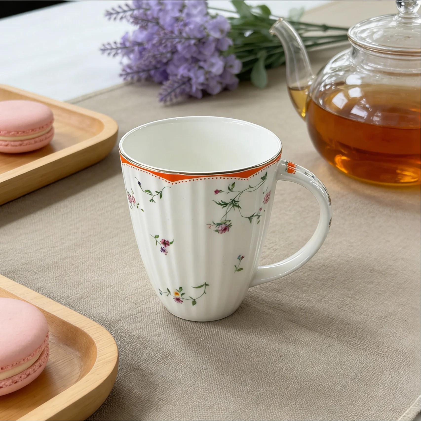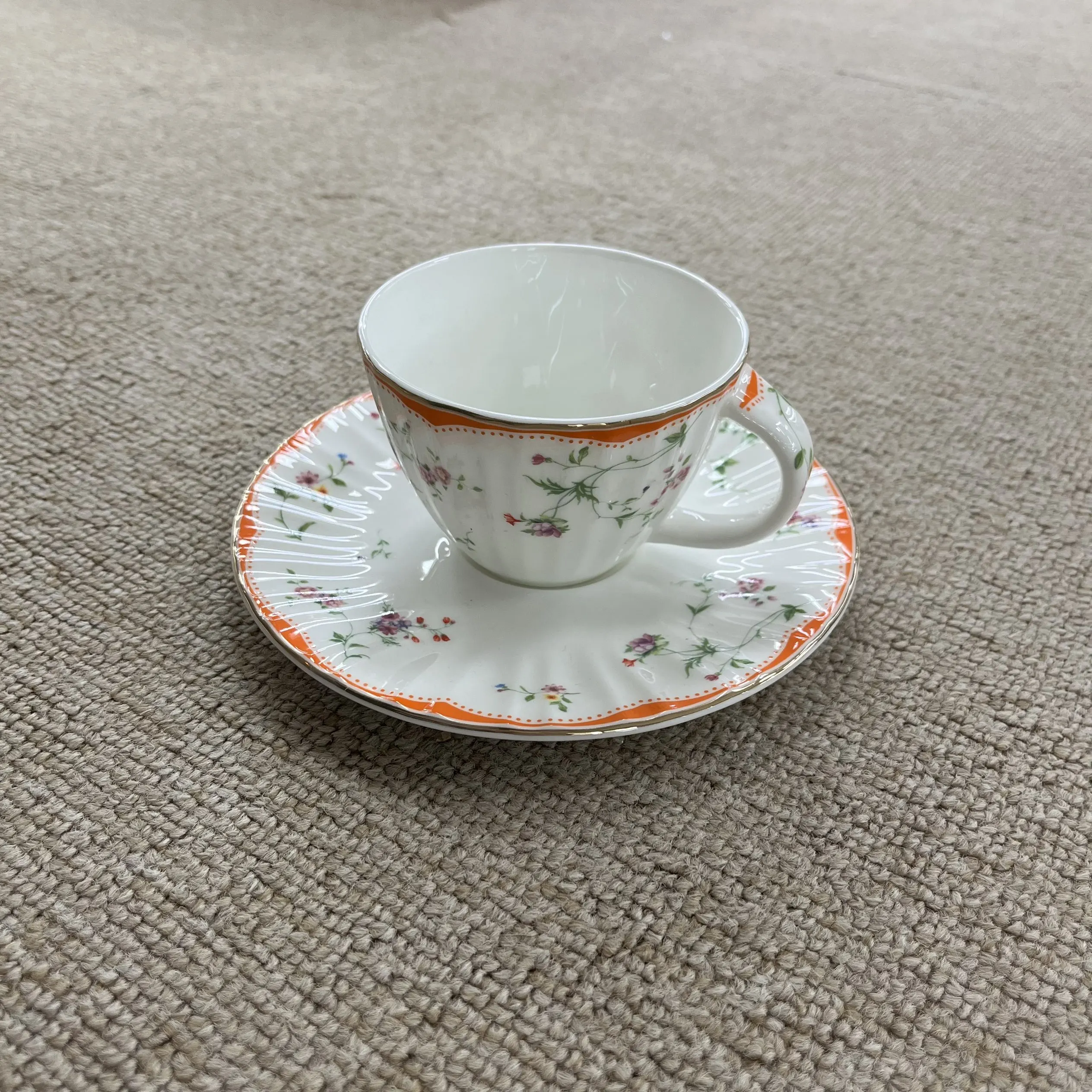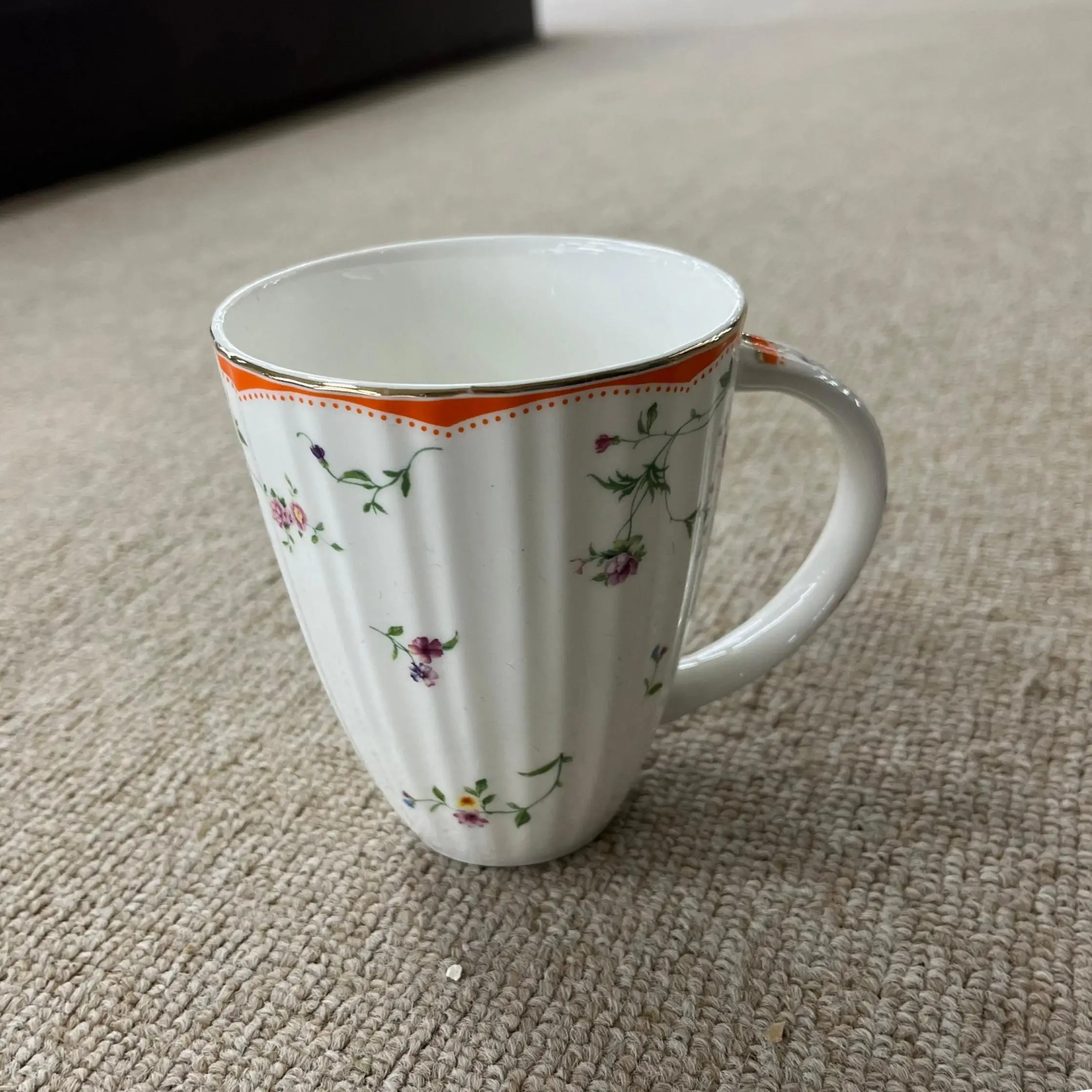 Κλασική Φλοράτη Κεραμική Κούπα | Με Καννάβωση και Πορτοκαλί Περιθώριο