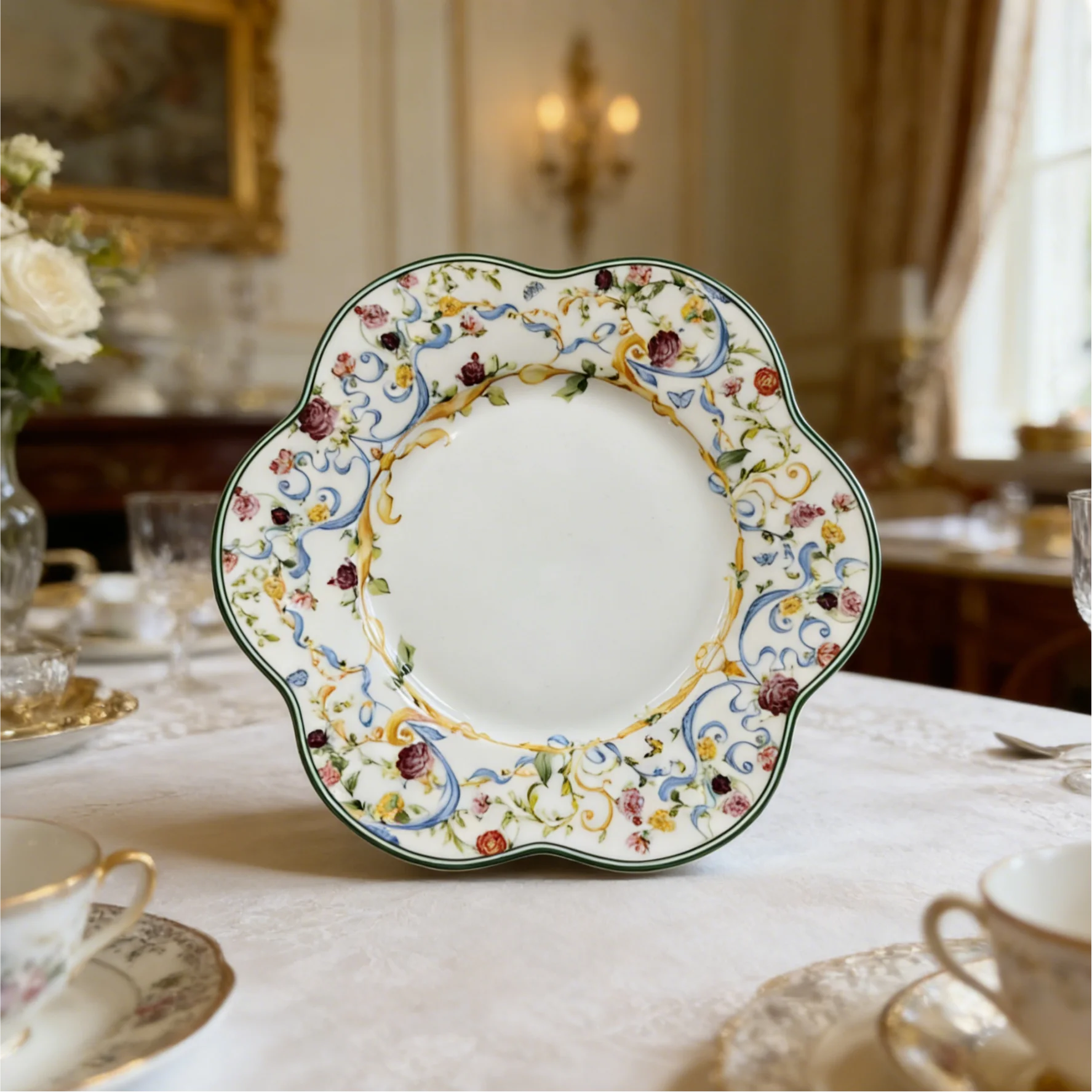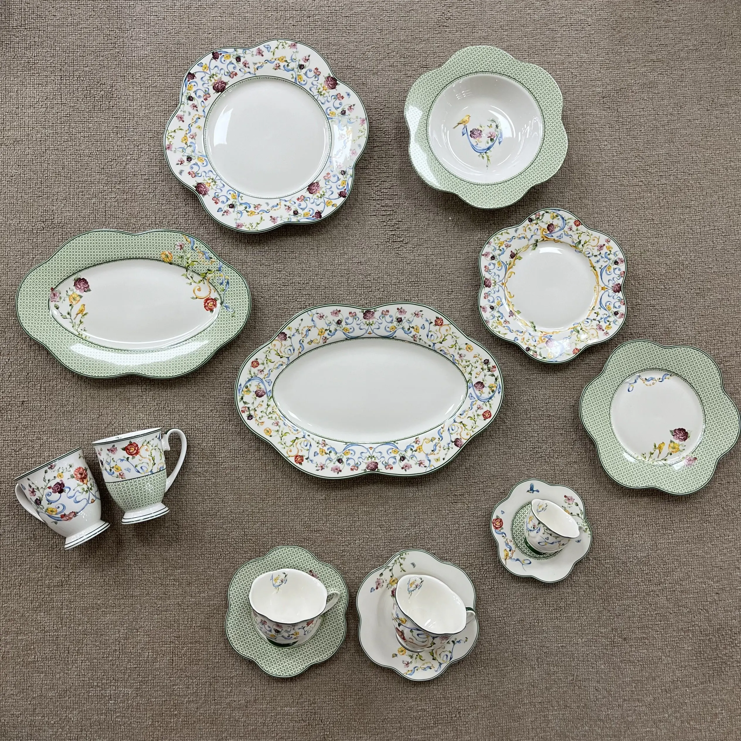Κλασικό Φλοράτο Σετ Κεραμικών Σκευών για Δείπνο, Βραδινό & Δώρο - Πολύκομμη Ελαφριά Πολυτέλεια Τραπεζαρία