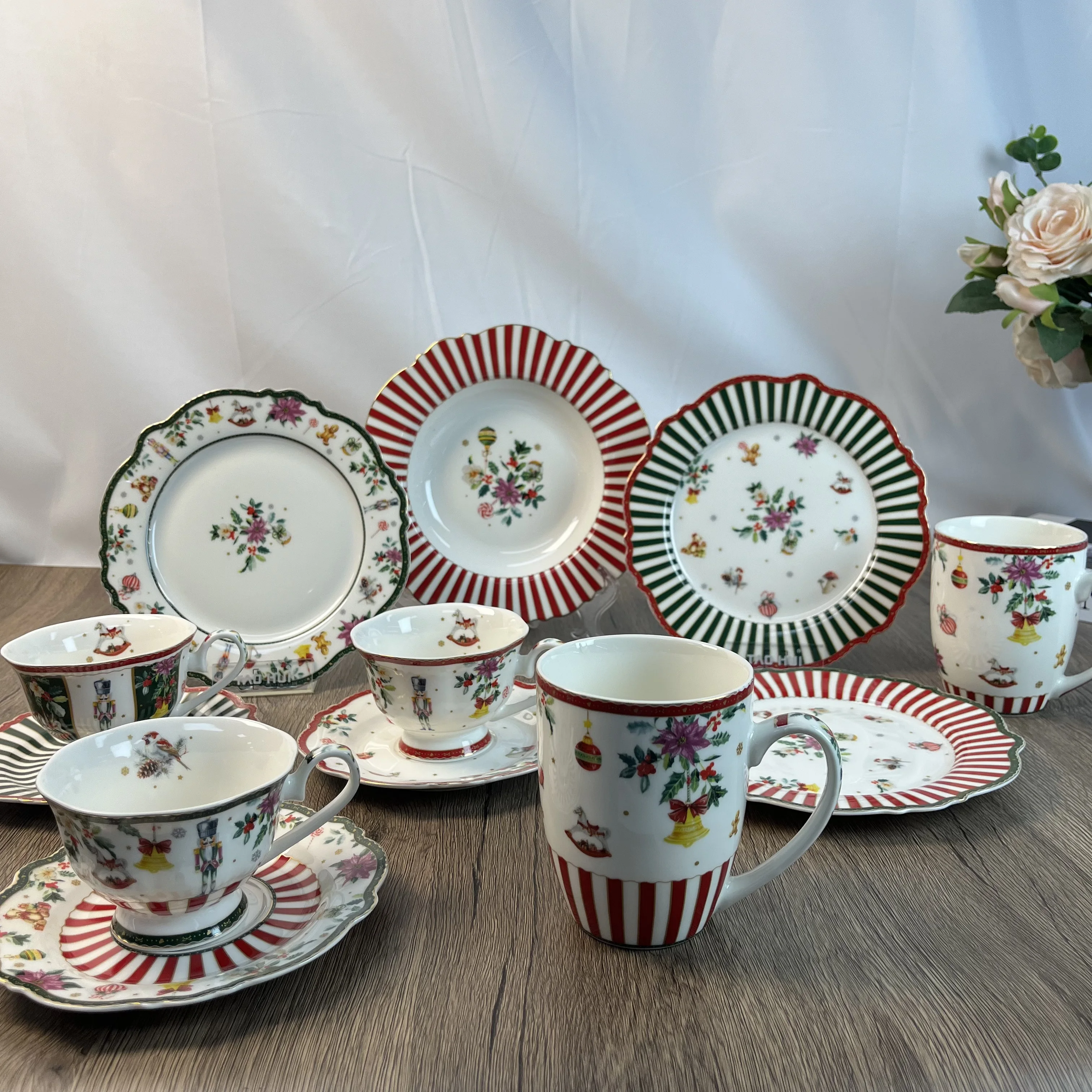 Kerst Porselein Tafelgerei Keramische Golfvormige Kopjes Schoteltjes Borden Thuisfeest Decoratie Feestelijk Vakantieservies